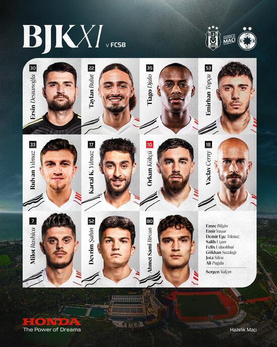 Ersin, Taylan, Tiago Djalo, Emirhan, Rıdvan, Kartal Kayra, Orkun, Cerny, Rashica, İhtilal, Ahmet Sami Bircan