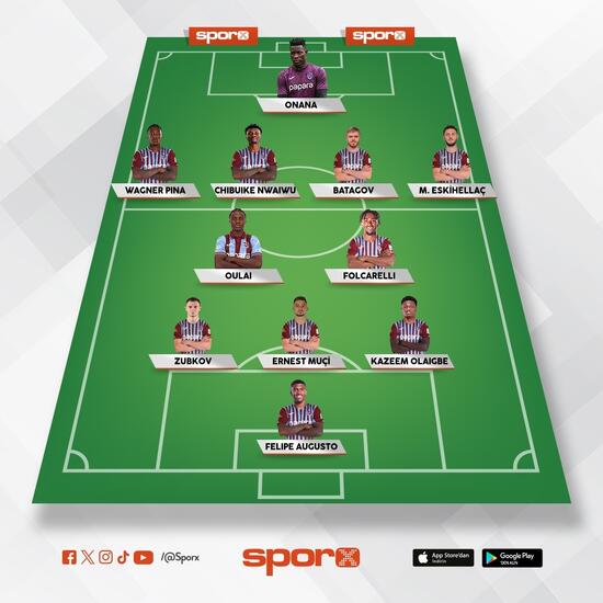 Trabzonspor: Onana, Pina, Nwaiwu, Batagov, Mustafa, Oulai, Folcarelli, Zubkov, Muçi, Olaigbe, Augusto.