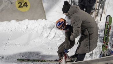 Çocuklar, cesaret gerektiren kayakla atlamaya hazırlanıyor